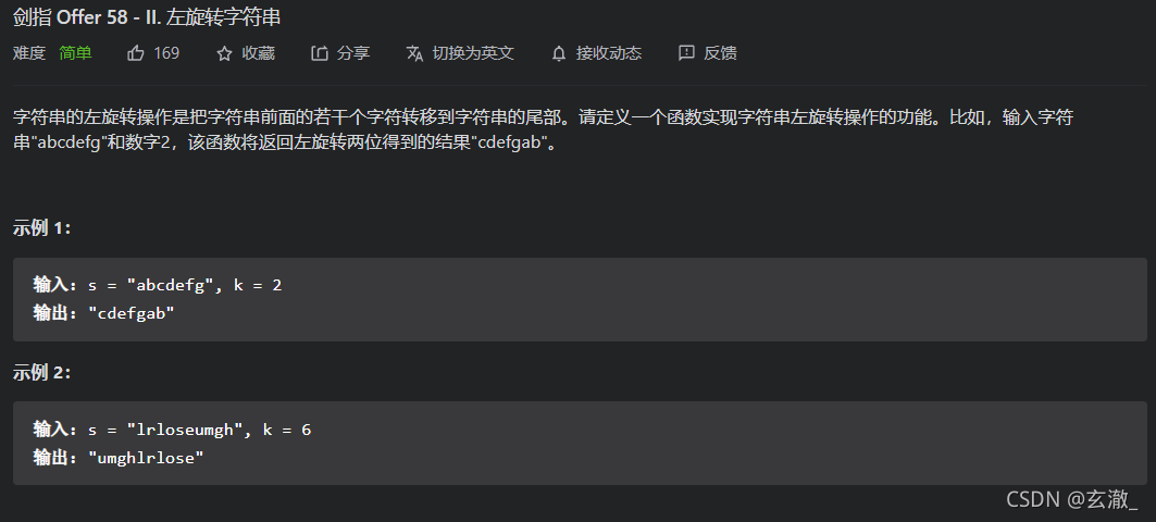 剑指 Offer 58 - II. 左旋转字符串 - 力扣(LeetCode) (leetcode-cn.com)