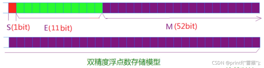 对于64位的浮点数,最高的1位是符号位S,接着的11位是指数E,剩下的52位为有效数字M。
