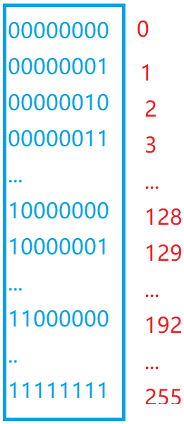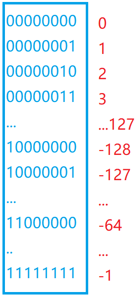 到这里这个题已经可以做出来了,但是我们再来深入剖析一下更深层的东西,来看一下有符号、无符号的char类型的十进制取值范围,下面的二进制序列都是补码,
