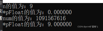 首先n的值是9是肯定没有问题的,当把n的地址存储到pFloat中时,9的原码补码相同,但因为pFloat是float类型,因此存储时: