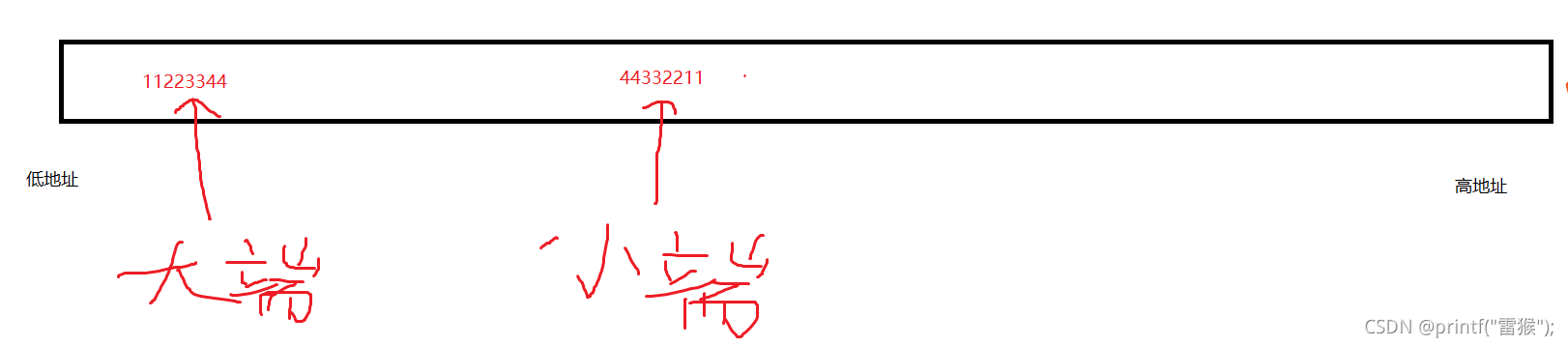 那么,如果我们只需要访问第一个字节的数据,如果是小端存储,那访问到的就是00000001 ,十进制也就是1,如果是大端存储,那访问到的就是00000000,也就是0,而因为i是一个整型,用整型指针访问时一次会访问4个字节,不管是大端还是小端都会返回1。因此返回的时候强制类型转换把i的地址存到char* 类型中再解地址访问,就可以访问一个字节。