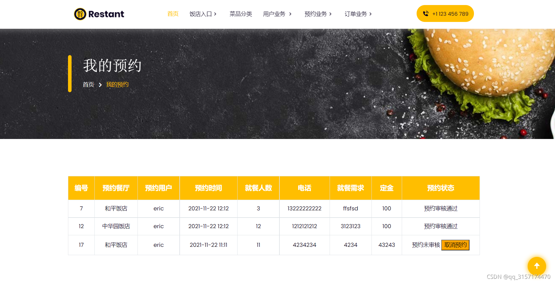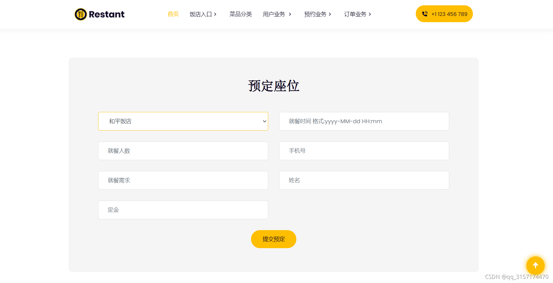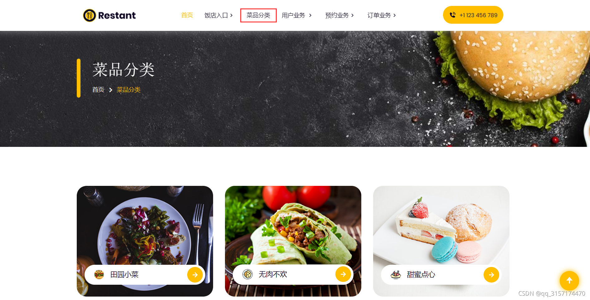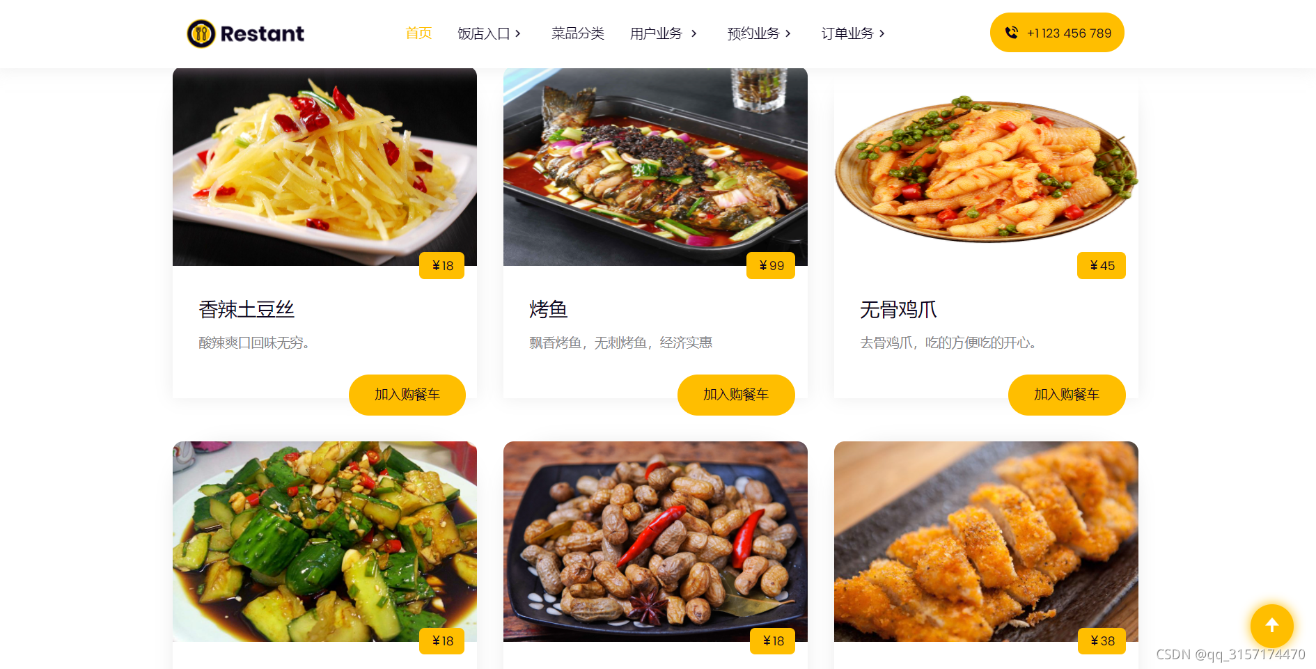 前端:登录注册首页饭店入口菜品分类用户业务预约业务订单业务后端:首页员工管理会员管理食品管理菜品管理点餐管理预定管理活动管理财务管理