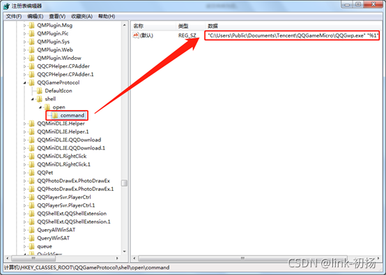 为:C:\Users\Public\Documents\Tencent\QQGameMicro\QQGwp.exe,1,如上图所示。