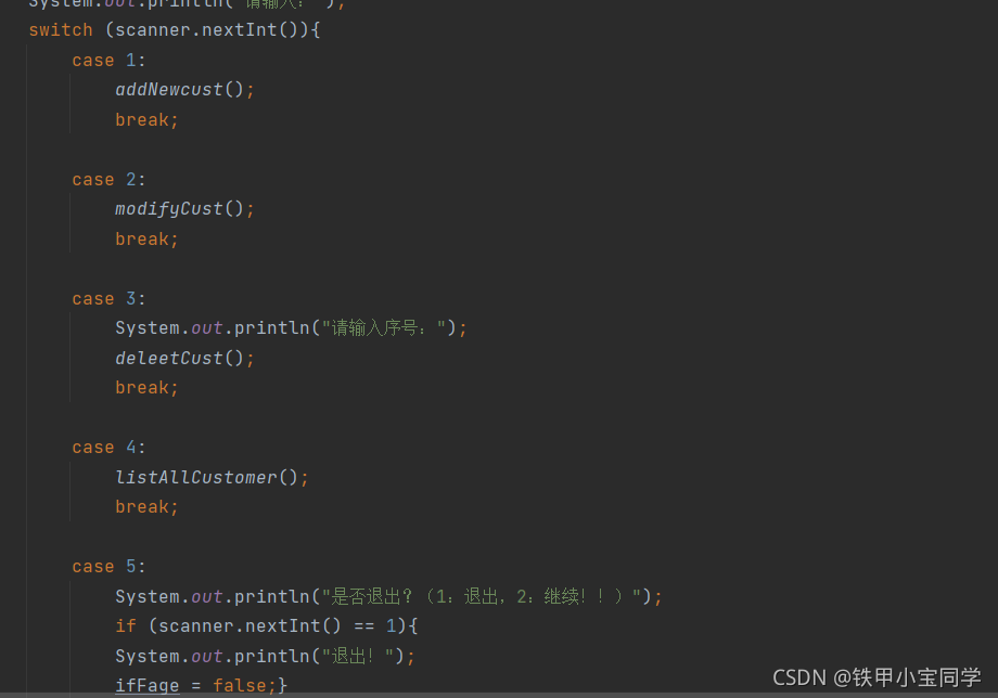 我们在使用功能的时候也是用的数字选择,我们可以使用switch结构进行选择,并且在相应的数字里面调用相对应的函数: