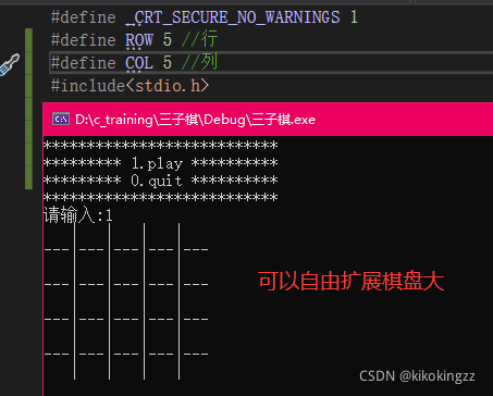 3.为了可以方便的改变棋盘的大小,用一个宏定义,方便修改棋盘的大小;例如将3*3的棋盘改成5*5的棋盘只需要将宏定义后的数字改变即可
