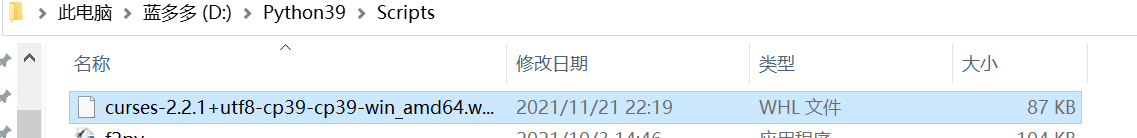 把whl文件放入Script文件夹后,进入Script文件夹: