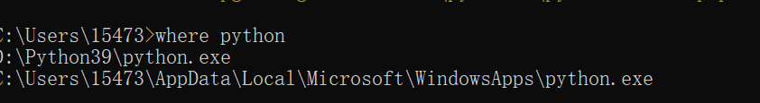 这个问题可以解决,先使用where python命令找到自己python的安装路径: