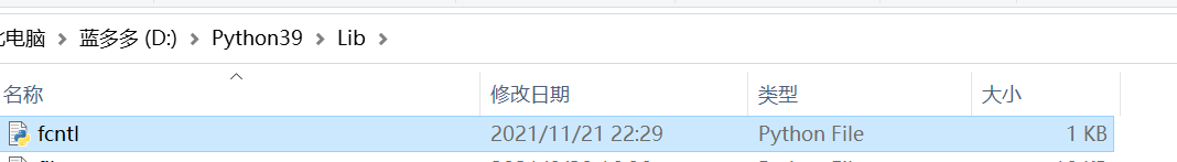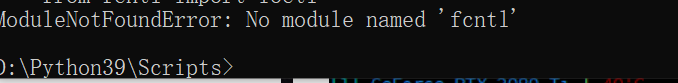 在 python 安装目录 中 Lib目录( 比如:D:\Python39\Lib ),创建 fcntl.py ,内容如下: