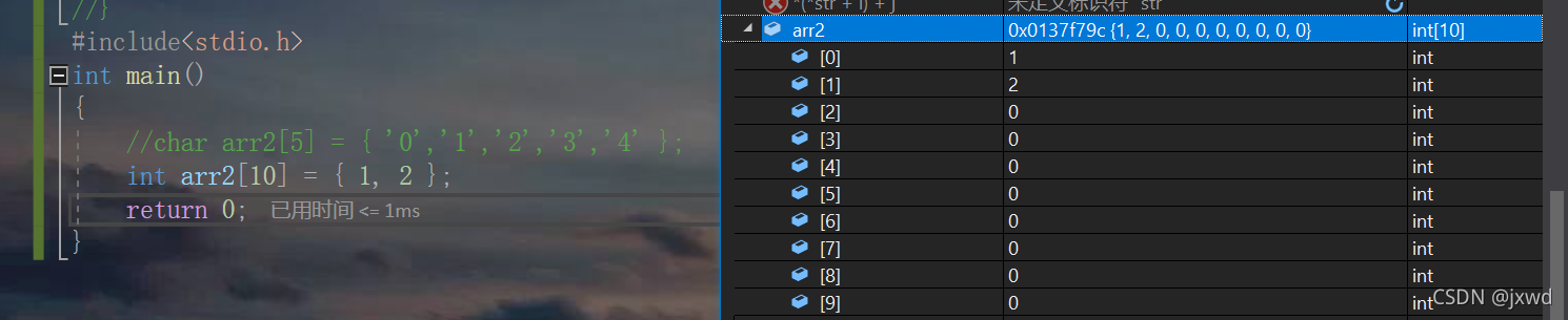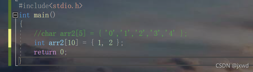 那么,如果我以后想把数组的元素全部置为0,就直接写int arr2[10] = { 0 };就完事了。