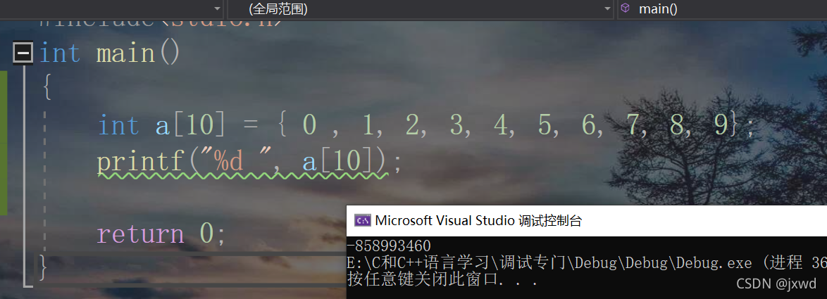 我们说,数组是有元素个数大小的。那么,如果我访问的元素超出了数组的元素的范围,结果会怎么样呢?