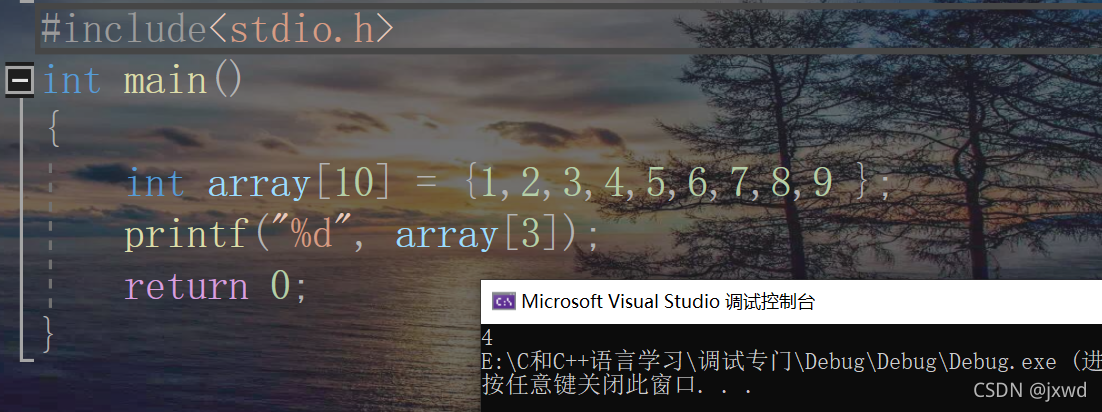 所以,上面的例子中,我们就用array[3]来表示数组array的下标为3的元素。