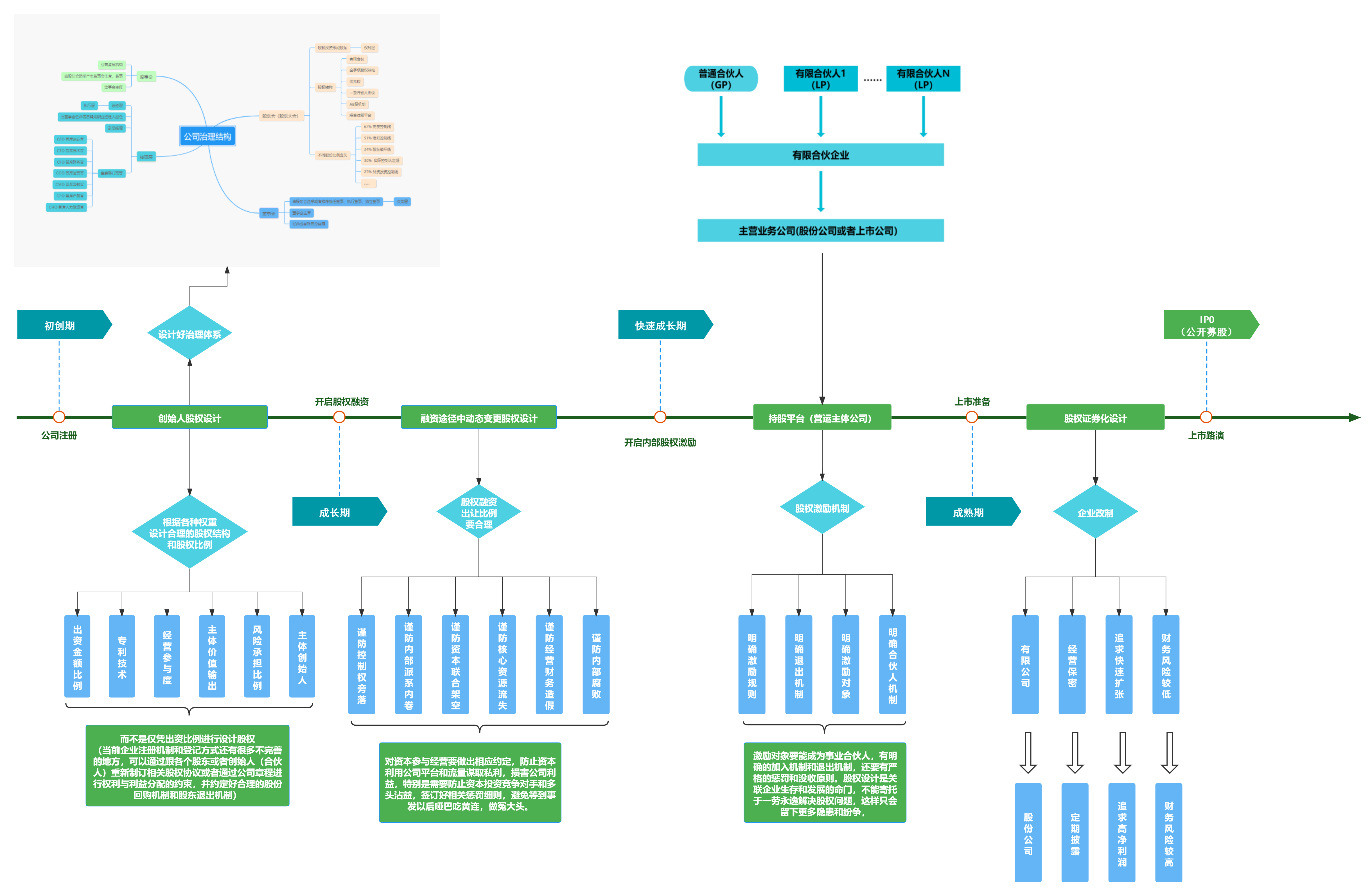 分享创业者需要了解和掌握的十张重要股权设计与公司治理关键思维脑图和关联知识结构图,更多专业图谱欢迎咨询。