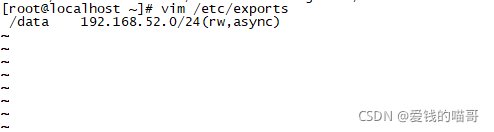 编辑/etc/exports,添加/data 192.168.1.0/24(rw,async)保存