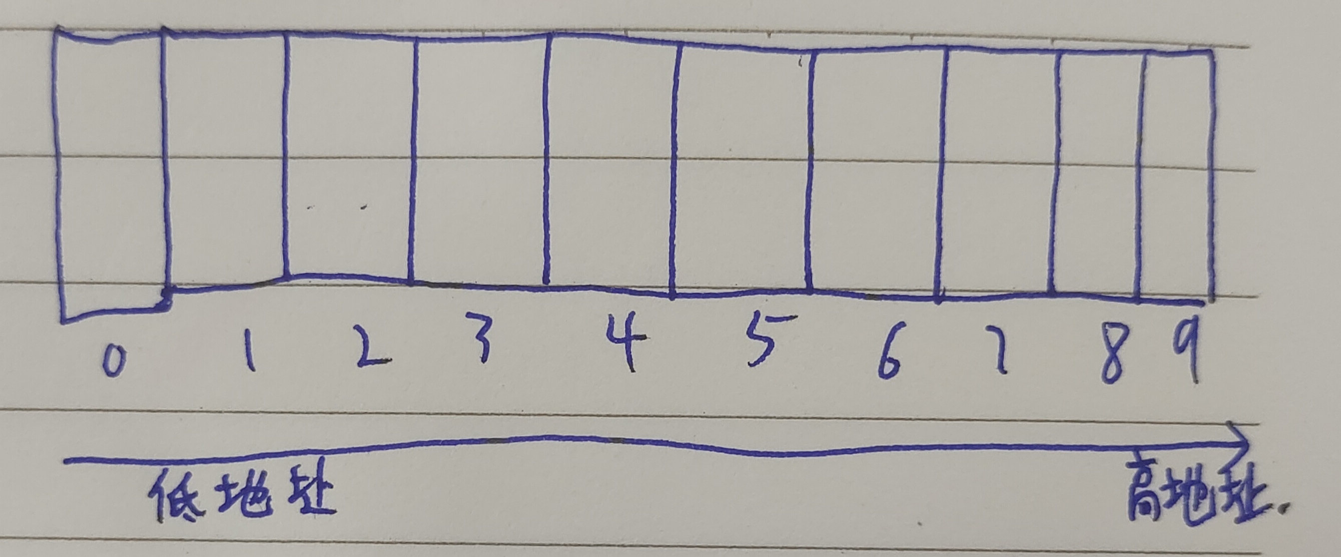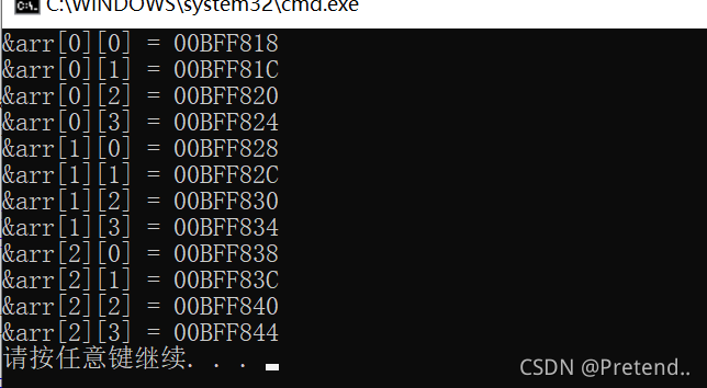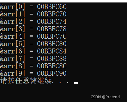 随着数组下标的增长,元素的地址,也在有规律的递增。 由此可以得出结论:数组在内存中是连续存放的。