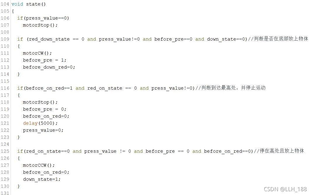 本设计采用Arduino uno R3开发板作为主控,结合FSR402压力传感器、红外避障传感器、L298N电机驱动模块实现了一个可以自动升降、自动停止、自动调速的宿舍升降机模型系统。