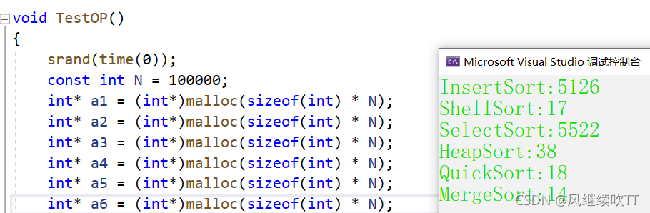 printf("InsertSort:%d\n", end1 - begin1);