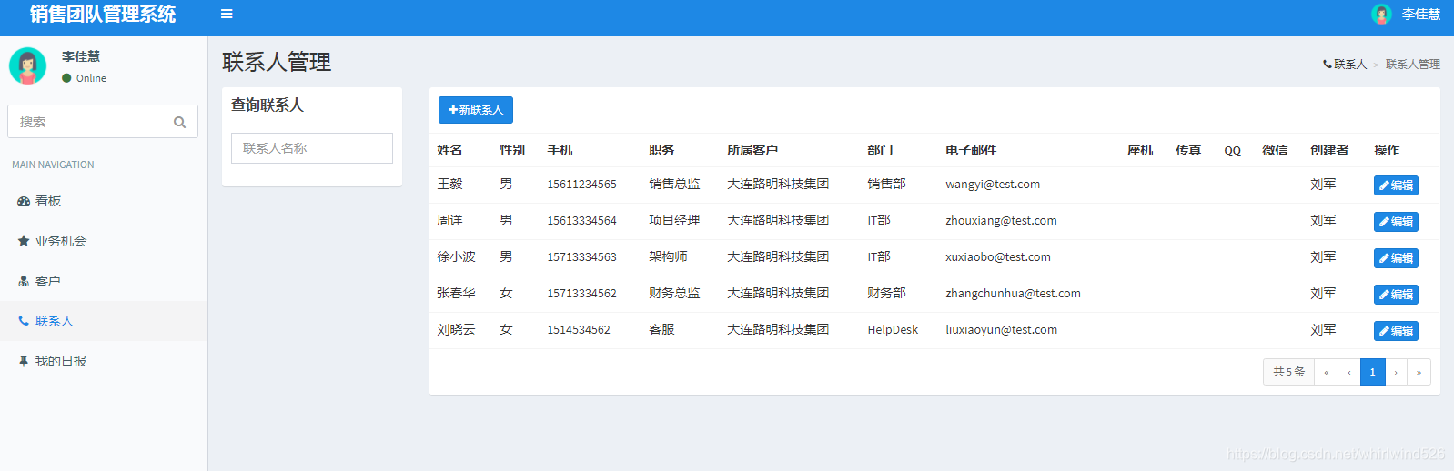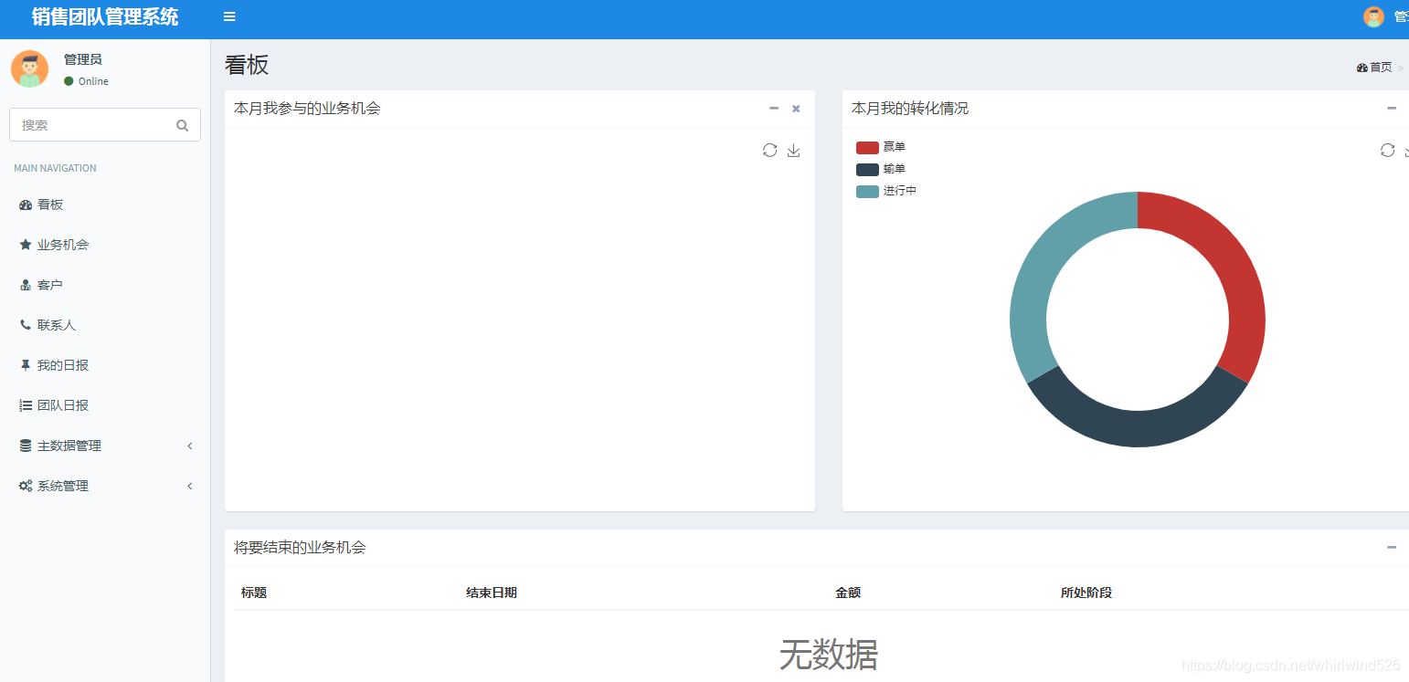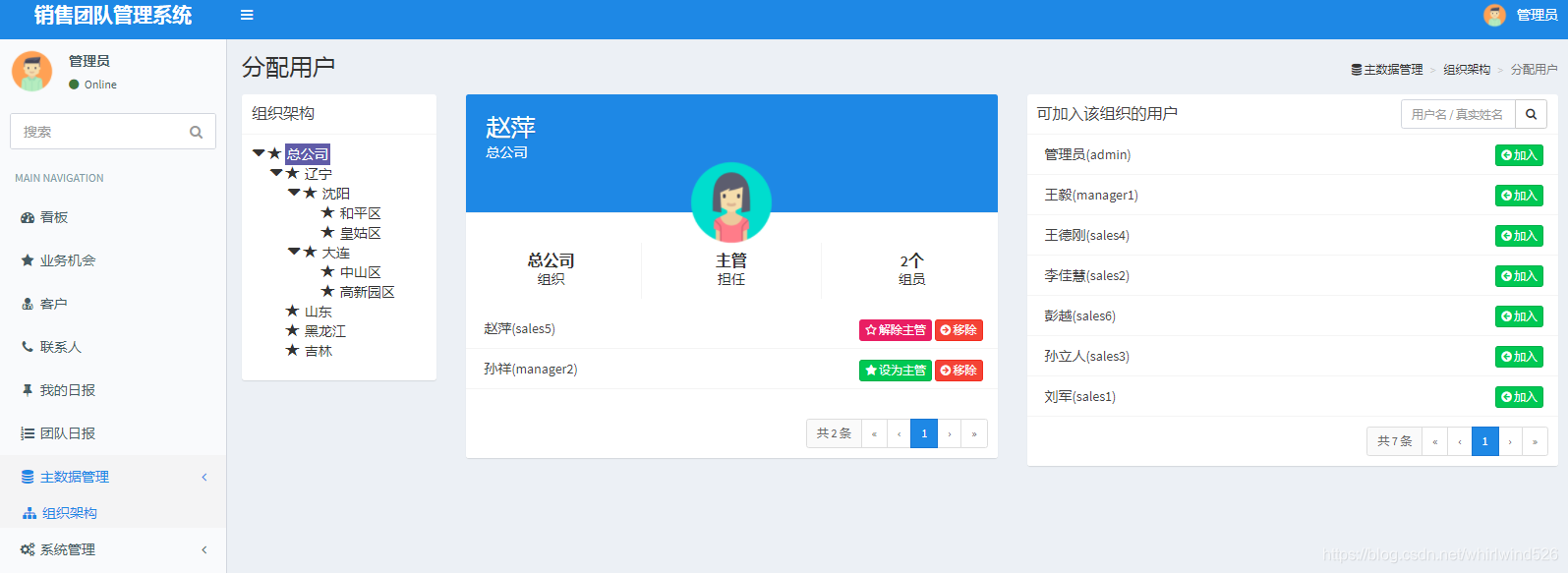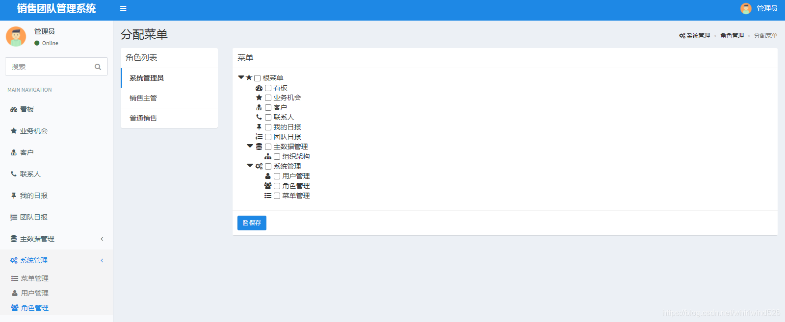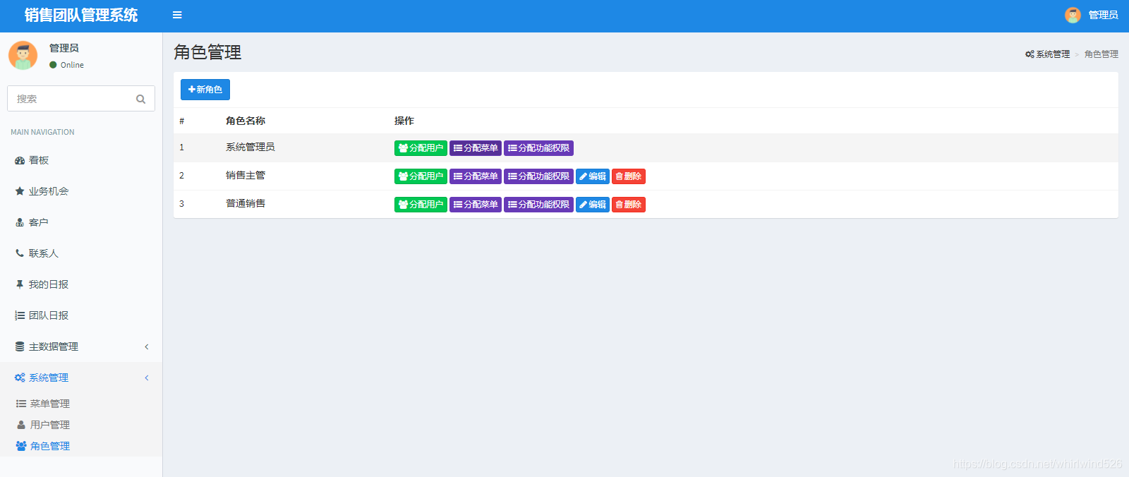 管理员具有所有操作功能,但主要是进行系统管理,业务管理交由销售员和团队领导去做