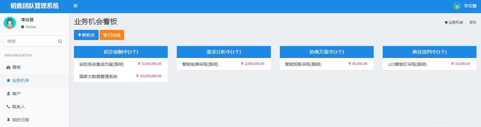 以上是展示的基于Springboot实现的销售团队管理系统,系统的功能比较完整,最大的亮点是前端界面设计的交互性非常好,操作也十分便利,比较适合做毕业设计使用。