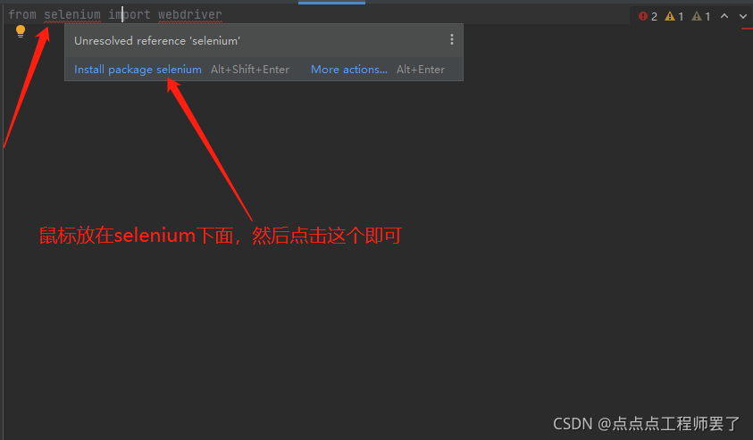 打开pycharm,然后新添加一个py文件,然后输入代码(from selenium import webdriver)