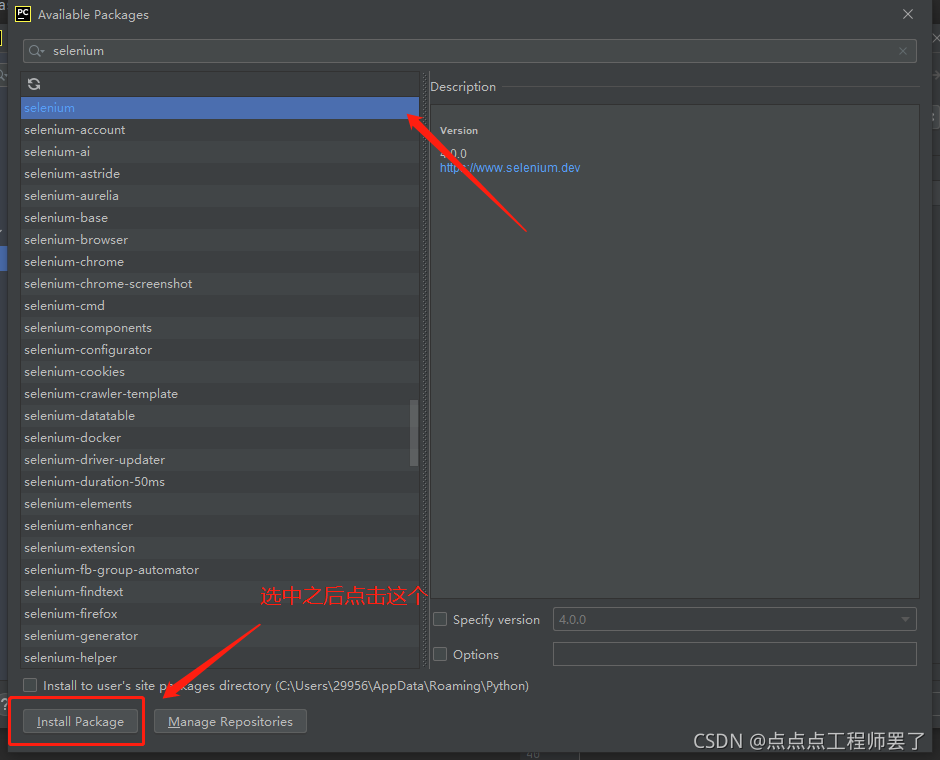打开pycharm,File >> Settings >点击加号>搜索selenium,进行安装即可
