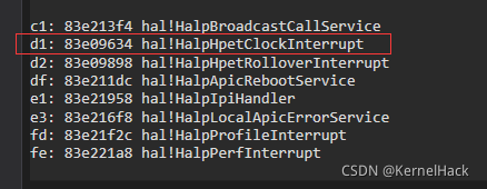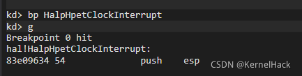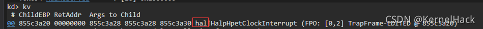 Windbg输入 bp HalpHpetClockInterrupt断点查看相关数据