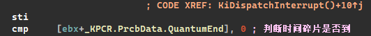 到期跳转执行KiQuantumEnd,此函数会重设时间碎片,并切换线程.