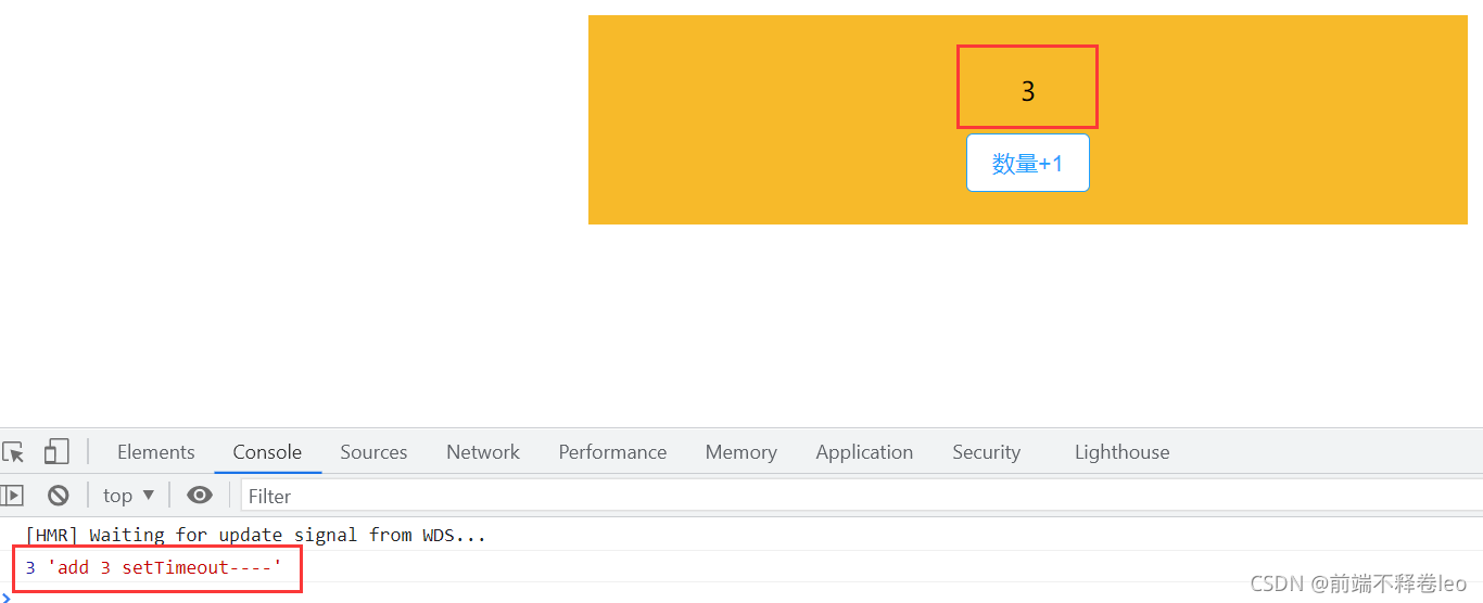此时页面显示为3。观察发现打印结果仍为0,我们想让打印结果同步,该如何做?
