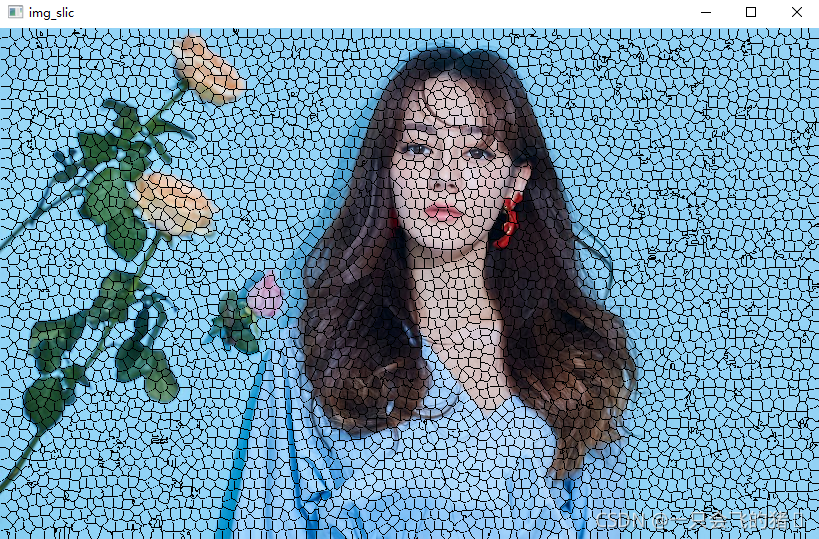 img_slic = cv.bitwise_and(img, img, mask=mask_inv_slic) # 对边界和原图进行与运算,在原图上绘制超像素边界